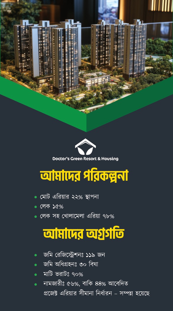 বাচ্চাদের খেলার মাঠ ও ওয়াটার রাইড সুইমিংপুল, কনভেনশন সেন্টার, রেস্টুরেন্ট এবং ক্যাফে। গাড়ী পার্কিংয়ের ব্যবস্থা, বড়দের জন্য খেলার মাঠ, বারবিকিউ জোন। কনফারেন্স হল, সুসজ্জিত হোটেল রুম, ডক্টরস ক্লাব, কৃত্রিম লেক, ফিশিং জোন ইন্ডোর গেমস ও ফিটনেস সেন্টার।
